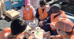 9月30日(火)三木浦の三鬼大さん、川口妙喜さんのご協力をいただき、3年生が養殖体験を行いました。タイの養殖場では、小割の中のタイにエサをやる体験をしました。三鬼さんからは、養殖のやりがいや難しさについて、たくさんのお話を聞かせていただくことができました。特に、三鬼さんが養殖されているタイは「伊勢まだい」「伊勢黒潮まだい」としてブランド化されており、エサから厳密に管理されていることを教えていただきました。さらに、さばきたての伊勢まだいのお刺身もご用意いただき、新鮮なブランド鯛のおいしさに子どもたちは驚いていました。また、養殖場までの送迎では川口さんにご協力いただきました。川口さんからも、養殖をしていた時の経験や、現在漁師をしている経験についてお話を伺うことができました。