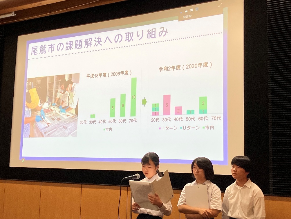 10月17日(金)、18日(土)、尾鷲市熊野古道センターで自然資源を活かした地域・人づくりESDダイヤログ「ESDダイヤログ2025大和水と人間と~南紀からのESD発信~」が行われました。1日目第2部【「ESDの取組~中部地方のネットワークを通じて」尾鷲市の取組】の中で、生徒会の村田圭紀さん、奥村香茉莉さん、中村奏音さんが、尾鷲市輪内中学校「ふるさとキャリア学習」を発表しました。